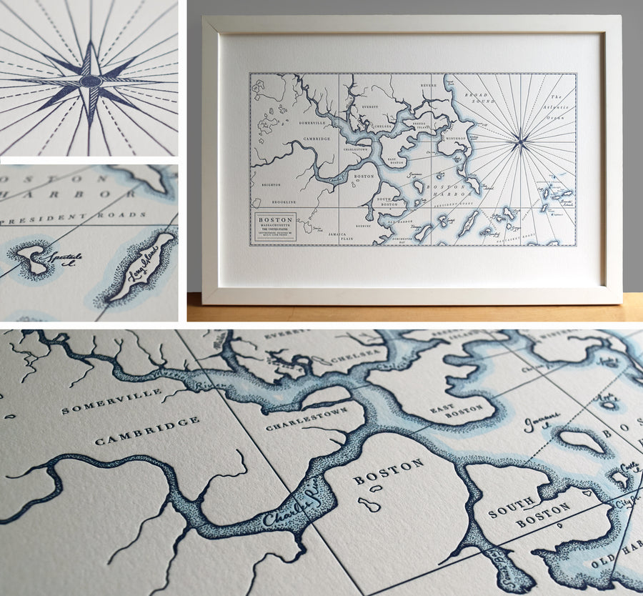 Boston Harbor, Letterpress Map – Quail Lane Press
